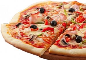 TOMATE, MOZZARELLA, JAMÓN YORK, CHAMPIÑONES, ALCACHOFAS Y OLIVAS NEGRAS